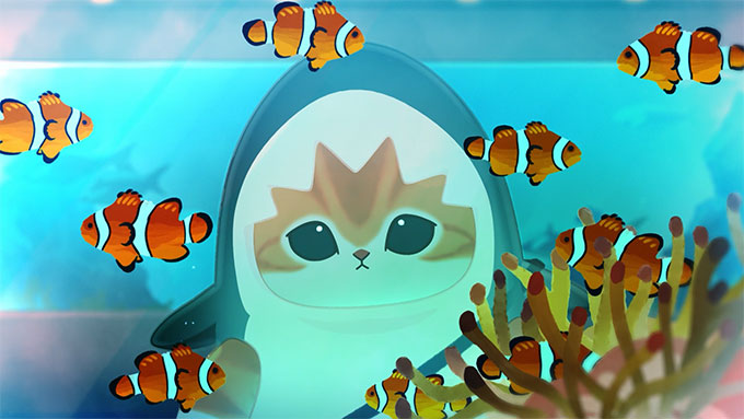 サメにゃんたちをあったかく彩っていく。